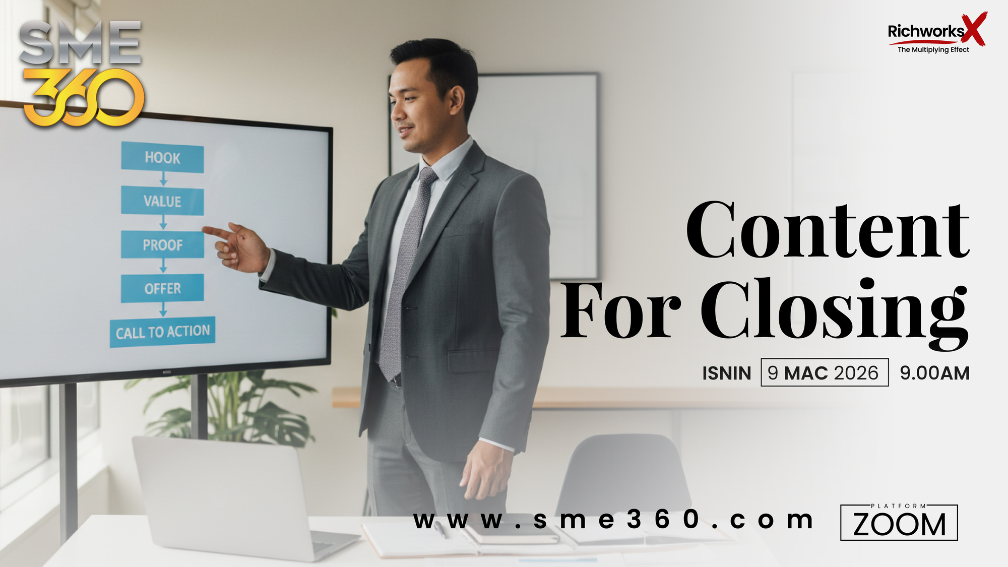 Selepas menonton webinar, anda akan terus dapat muat turun eBook “30 Realiti Pahit Dunia Usahawan” dalam format PDF, panduan padat untuk bantu anda semak, refleksi dan betulkan langkah.